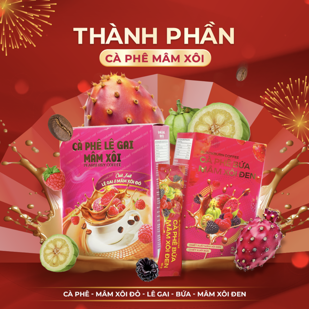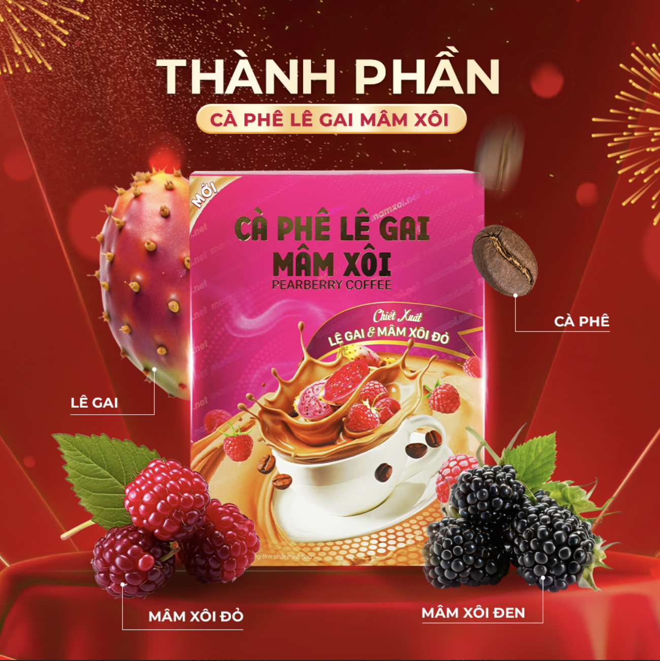 Cà Phê Mâm Xôi Đỏ - Sự hòa quyện độc đáo giữa cà phê nguyên chất và các thành phần thiên nhiên như mâm xôi đỏ, lê gai, quả bứa. Sản phẩm không chỉ mang đến hương vị thơm ngon, dễ uống mà còn giúp cơ thể luôn nhẹ nhàng, thanh thoát, đồng thời hỗ trợ lối sống lành mạnh cho người hiện đại.